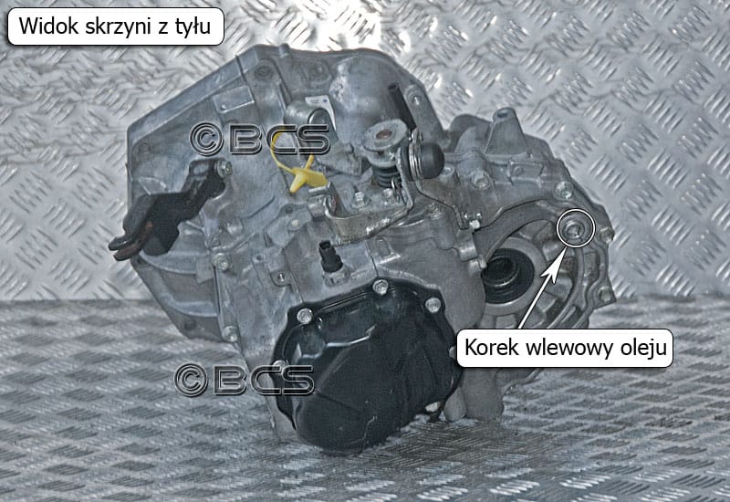 Korek służący do wylewania oleju ze skrzyni biegów MF60B znajduje się pod skrzynią bezpośrednio pod mechanizmem różnicowym. Do wlewania oleju służy korek znajdujący się obok miejsca, w którym zamontowana jest półoś napędzająca koło od strony kierowcy.